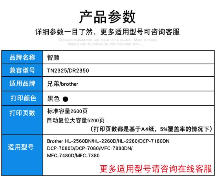 適用兄弟DCP7080D硒鼓TN2325粉盒DR2350硒鼓架MFC7380 7180DN 7480D 7880DN HL2260D 2560DN碳粉盒打印機墨盒